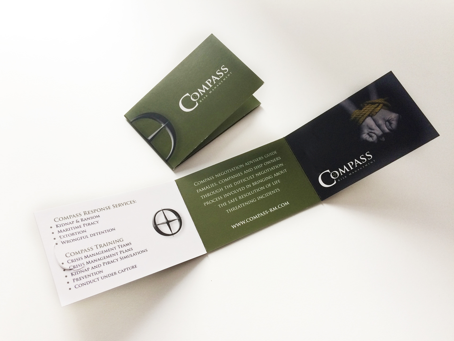 Compass - Fold Out Business Cards - Printed on 450g Silk Card - Dye Cut Close slits finished with quality soft touch matt laminate.
